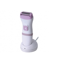 Rechargeable Lady Shaver with triple blade system. Washable, easy to hold and hygienic. With charging station.