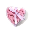 Six flower soaps in a heartshaped pvc box with ribbon.