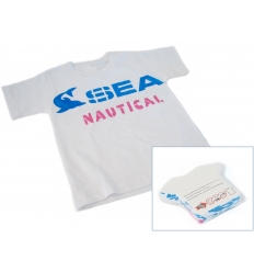 Komprimerad t-shirt med rund hals. T shirt har tryck och logga på framsidan. Denna komprimerade t-shirt går att få i olika storlekar och färger. Vakumförpackad t-shirt i tröjformad packning med logga och tryck.