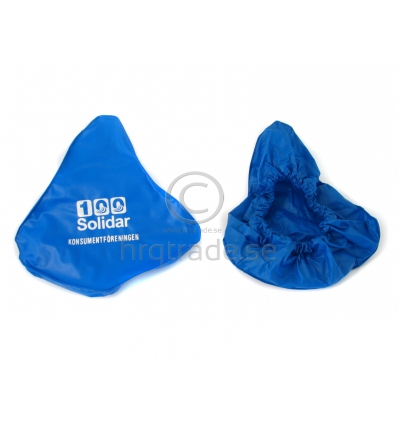 Sadelskydd för cykel. Regnskydd med reklamtryck. Finns i olika storlekar och material.
